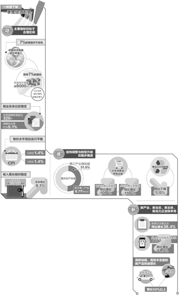 4月15日,国家统计局公布了今年一季度我国国民经济运行主要数据。虽然国民经济增速有所放缓,但缓中有稳、缓中有进、缓中有新。从一系列的经济数据中,可以看到,我国经济总体上仍运行在平稳区间,结构调整稳步推进,转型升级势头良好,新生动力加快孕育,积极因素不断累积,我国经济仍在向着中高端加速迈进——