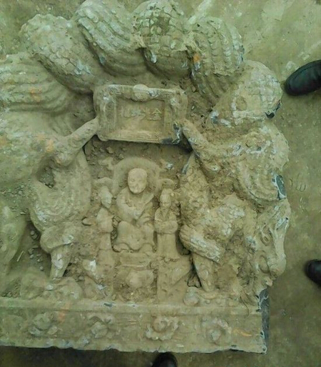 4月23日,魏师傅说,1988年他家翻修老宅时,从地下挖出了一块没有碑身的石碑碑头,正面不仅有形象的人物造型,还有精美的花纹纹饰,看到碑头做工精美,他感到应该是个老古董。