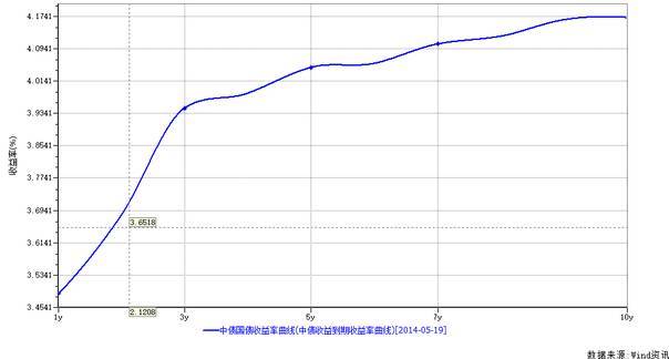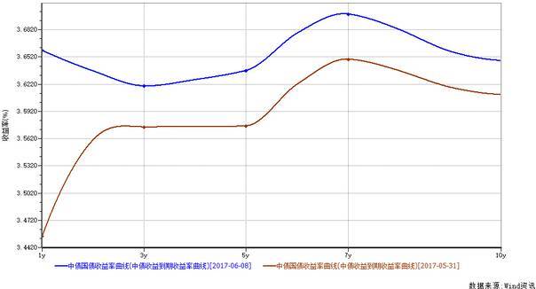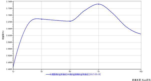 这是2017年5月19日中债国债收益率曲线(1至10年期):