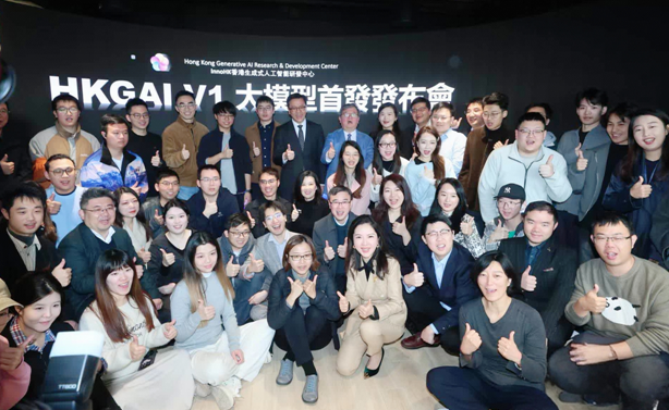 香港特区政府创新科技及工业局局长孙东教授与HKGAI研发团队合影留念