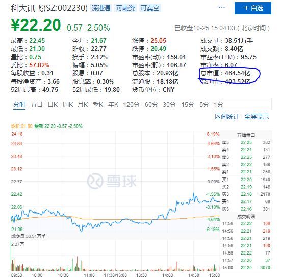 从这两场风波中可以看出,科大讯飞的主营业务和收入模式饱受外界质疑。更为不妙的是,其股价已经滑落超过30%。若自去年11月股价高点每股49.75元计,不满一年里,科大讯飞股价下跌幅度更是达到54.23%,总市值也仅为464.54亿元。2017年11月22日,科大讯飞盘中市值突破千亿大关。