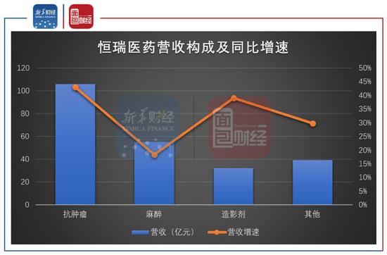 其抗肿瘤药2019年贡献营收105.76亿元,占总营收的比例达到45.41%,是最主要的收入来源。麻醉、造影剂业务的营收分别为55.07亿元、32.30亿元,分别占总营收的23.65%以及13.87%。