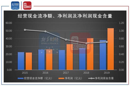 图4:2015-2019年恒瑞医药经营现金流净额、净利润及净利润现金含量