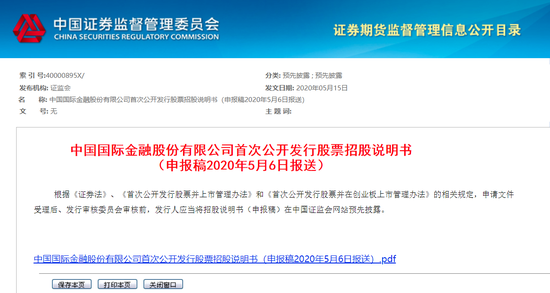 5月15日晚间,证监会首次披露了中金公司招股书。