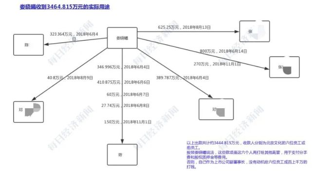 “然后这些人再分别把钱输送给两位指定的上市公司离职高管。”娄晓曦说,虽然他不能提供这些钱通过这六个人进一步转给前高管的转账记录,但他认为,“如果不是为了这个原因,我作为上市公司副董事长、电视剧板块负责人,我有什么动机、有什么诉求,去给这些高管成百万上千万地打钱?上市公司对这些没有做任何说明。”