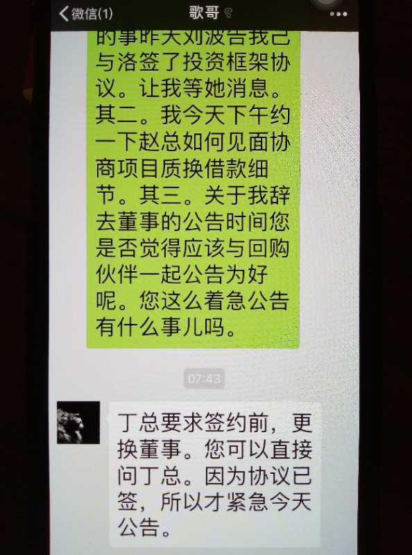 看到自己的辞职公告,娄晓曦还问过宋歌:“我辞去董事的公告时间是否应该与回购(世纪)伙伴一起公告为好呢,这么着急公告有什么事儿吗。”