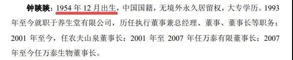 “养生堂少主”钟睒睒儿子Zhong Shu Zi情况也有所披露。文件显示,Zhong Shu Zi为美国国籍。Zhong Shu Zi于2011年12月获得美国加州大学欧文分校英语专业文学学士学位,在2014年1月加入农夫山泉,2017年获任非执行董事,负责对业务计划、重大决策及投资活动提供意见,2020年1月担任养生堂品牌中心总经理。