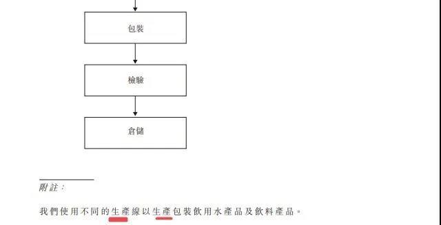 在文件披露的生产流程环节,“生产”二字再现。并且就生产流程做了说明,包装饮用水通过取水及检验、过滤、杀菌、灌装等环节。