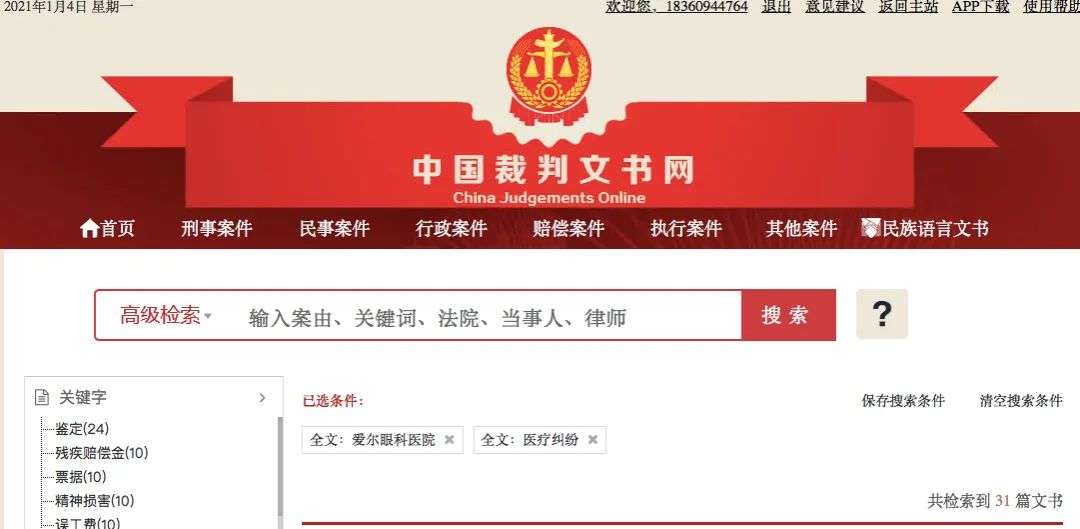 在中国裁判文书网搜索关键词发现,与爱尔眼科医院相关的医疗纠纷案件有30余起。2019年,葫芦岛市连山区人民法院发布的一起民事判决书的原告刘某与艾芬经历类似。