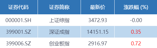 4月21日,沪指早间低开后在医药、白酒等股带动下回升翻红,随后一路横盘整理,全天基本收平报3472.93点;深成指涨0.35%报14151.15点;创业板指相对较强势,收涨0.72%报2916.97点。