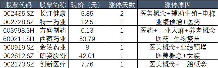 3、“喝酒、吃药”行情上演,中药、医美概念持续活跃,共有7只个股涨停。