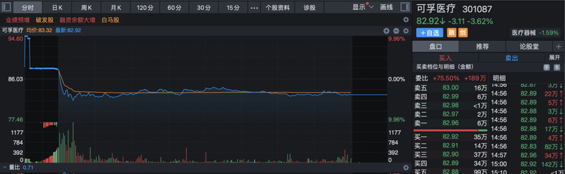 然而11月8日开盘,投资者集体选择用脚投票,公司股价开盘便一路下跌,截至收盘时可孚医疗当日跌幅为3.62%,股价报收82.92元/股。