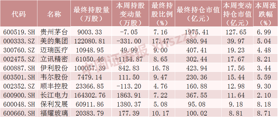 从市场表现看,本周北向资金持仓市值增加额前十位的股票均上涨,其中顺丰控股涨幅最大,累计上涨9.30%。