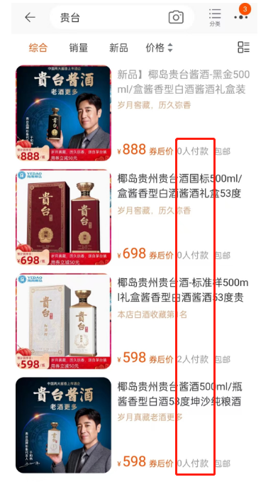 但酒业内参查阅椰岛淘宝官方旗舰店发现,由于和伟代言的售价为598元-1899元的多款贵台酒销量为0。