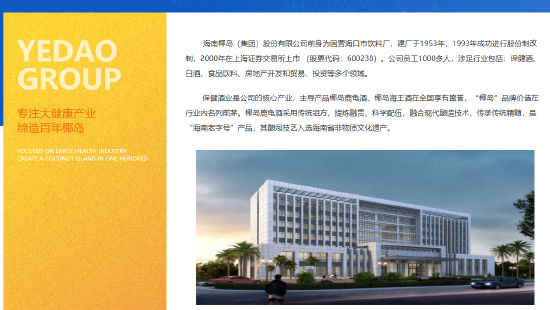 据海南椰岛官网介绍,保健酒业是公司的核心产业,主导产品椰岛鹿龟酒、椰岛海王酒在全国享有盛誉,“椰岛”品牌价值在行业内名列前茅。