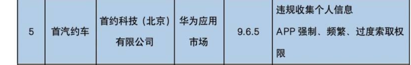 在此次通报中,工信部指出首汽约车存在违规收集个人信息和APP强制、频繁、过度索取权限的问题。