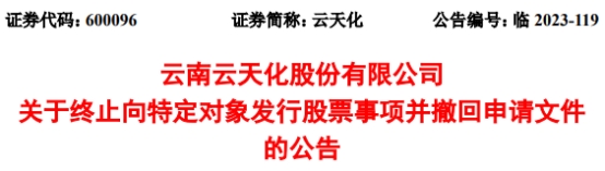 对于终止向特定对象发行股票事项并撤回申请文件的原因,云天化公告表示,自公布本次向特定对象发行股票方案以来,公司一直与中介机构积极推进相关工作。基于行业和市场变化,经与相关各方充分沟通及审慎分析后,公司决定终止本次向特定对象发行股票事项并撤回相关申请文件。