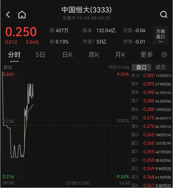 12月4日早盘,中国恒大港股一度跌超4%。截至9点56分,中国恒大港股涨超5%。