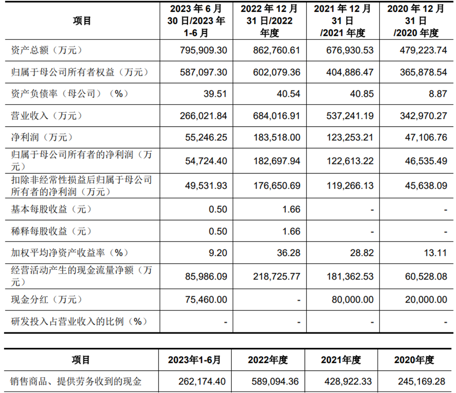 上述同期,公司销售商品、提供劳务收到的现金分别为245,169.28万元、428,922.33万元、589,094.36万元和262,174.40万元;经营活动产生的现金流量净额分别60,528.08万元、181,362.53万元、218,725.77万元和85,986.09万元。