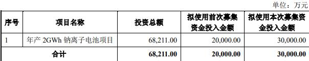 公司于2023年5月15日召开第十届董事会第二十七次会议、第十届监事会第二十三次会议,审议通过了本次发行方案及其他发行相关事宜。根据本次发行的竞价结果,本次发行股票募集资金总额为299,999,997.20元,在扣除相关发行费用后的净额拟投入“年产2GWh钠离子电池项目”。