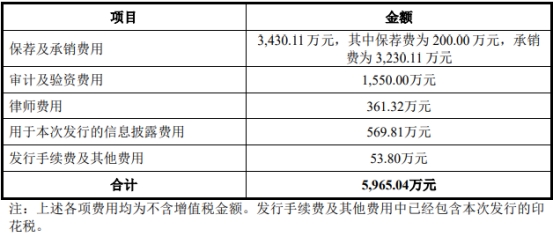 中远通本次发行费用(不含增值税)总额为5,965.04万元,保荐及承销费用为3,430.11万元,其中保荐费为200.00万元,承销费为3,230.11万元。