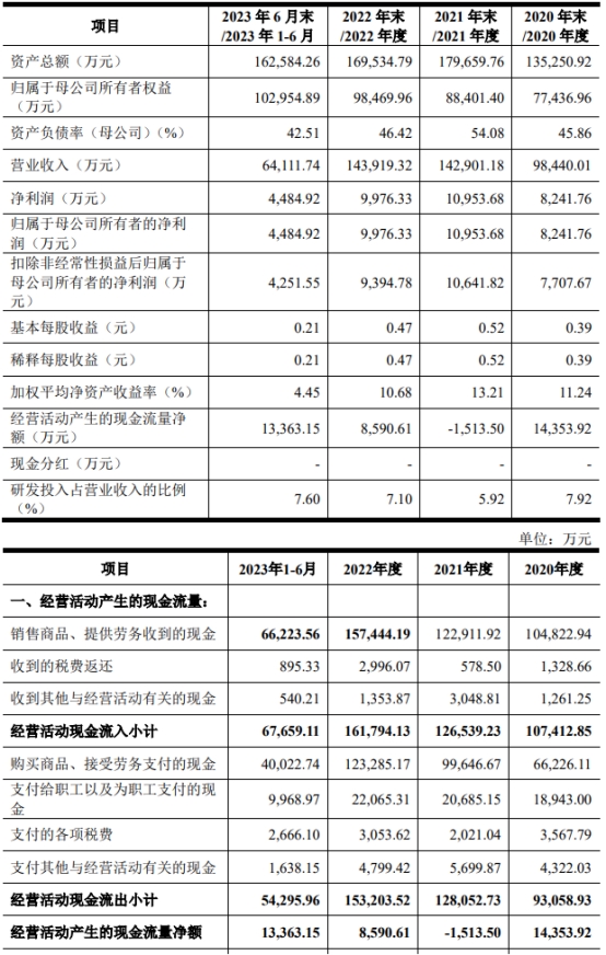 2020年至2023年1-6月,中远通营业收入为98,440.01万元、142,901.18万元、143,919.32万元、64,111.74万元,净利润分别为8,241.76万元、10,953.68万元、9,976.33万元、4,484.92万元,归属于母公司所有者的净利润分别为8,241.76万元、10,953.68万元、9,976.33万元、4,484.92万元,扣除非经常性损益后归属于母公司所有者的净利润分别为7,707.67万元、10,641.82万元、9,394.78万元、4,251.55万元。