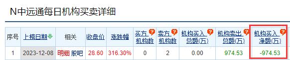 龙虎榜数据显示,卖出中远通金额最大的前五名中,有2家机构专用席位。经统计,机构席位今日卖出中远通净额为974.53万元。