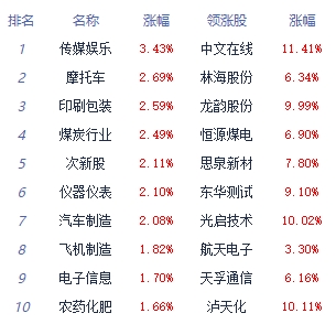 中国经济网北京12月11日讯 今日,A股三大指数集体低开,午后震荡回升,全线翻红。盘面上,传媒、煤炭开采加工、黑色家电等板块涨幅居前,贵金属、非金属材料、房地产服务等板块跌幅居前。