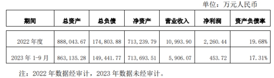 2022年、2023年1-9月,杉金光电(苏州)有限公司营业收入分别为10,993.90万元、5,906.07万元,净利润分别为2,260.44万元、453.72万元。