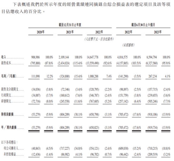 2020年、2021年及2022年以及截至2023年6月30日止六个月,公司分别录得亏损净额5327.9万元、8.04亿元、4.51亿元及9.20亿元。瑞浦兰钧称,主要归因于扩大产能导致利用率低、原材料价格波动、产品组合及定价战略、运营开支及2023年初的电动汽车行业市场状况。