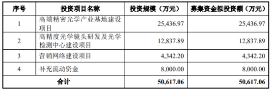 长步道原拟在上交所科创板公开发行股票数量不超过2,424.24万股,原拟募集资金50,617.06万元,计划用于高端精密光学产业基地建设项目、高精度光学镜头研发及光学检测中心建设项目、营销网络建设项目、补充流动资金。