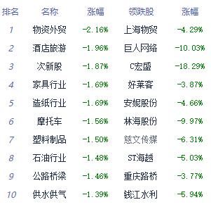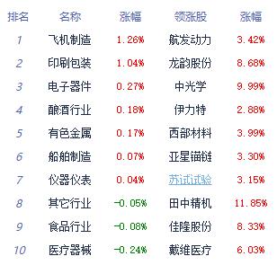 板块方面,国防军工、汽车零部件、消费电子、非金属材料涨幅居前,传媒、港口航运、房地产服务、贸易跌幅居前。