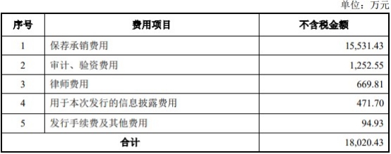 本次公司公开发行新股的发行费用合计1.80亿元(不含增值税)。其中,保荐承销费用1.55亿元。