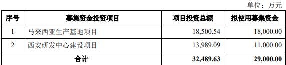 2023年5月30日,普源精电披露《以简易程序向特定对象发行股票预案》, 本次发行募集资金总额不超过(含)29000.00万元,不超过人民币三亿元且不超过最近一年末净资产百分之二十。本次向特定对象发行股票实施募投项目的投资总额为32489.63万元。结合项目具体建设内容,公司拟使用募集资金投入29000.00万元,用于马来西亚生产基地项目、西安研发中心建设项目。