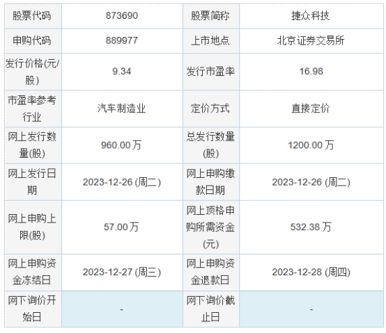 今日申购:捷众科技