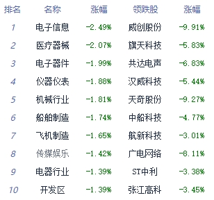 板块方面,化学原料、物流、贵金属、贸易等板块领涨,自动化设备、半导体及元件、消费电子、计算机设备等板块走低。