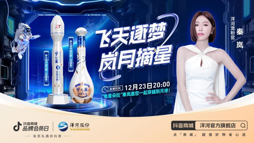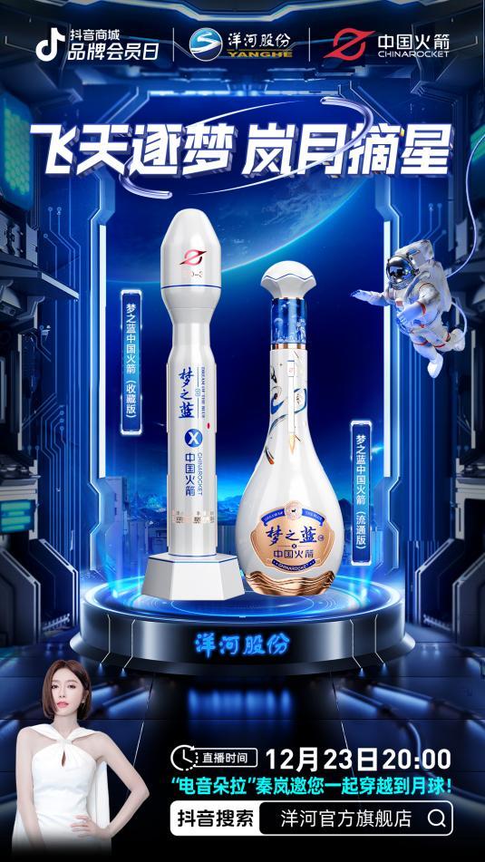 作为中国白酒行业的领军企业之一,洋河始终以创新为核心驱动力,近年来,洋河积极拓展线上销售渠道,不断探索和尝试互联网新营销模式,并通过创意直播活动形式,成功吸引了大量年轻消费者的关注。在2023年12月23日至29日期间,洋河在抖音平台的“洋河官方旗舰店”开展了品牌会员日活动。其中,12月23日还进行了新品「梦之蓝中国火箭」的全网直播首发,此次活动不仅进一步提升了洋河品牌的影响力和知名度,同时也通过3D建模搭建的科技场景,为消费者带来了全新的购物体验。
