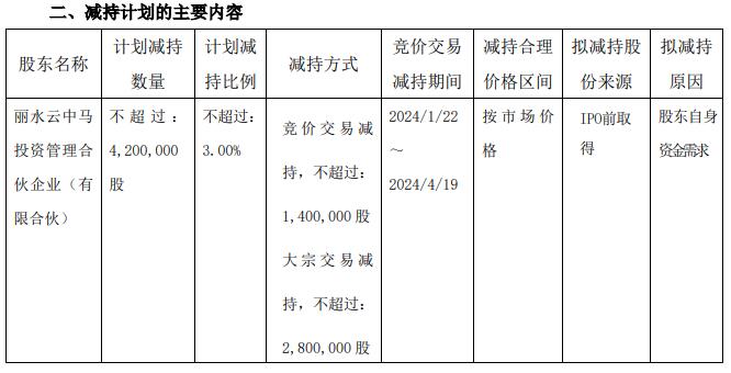 云中马表示,截至公告披露日,云中马合伙持有公司股份18,549,250股,占公司总股本的13.25%。上述股份均来源于公司首次公开发行前持有的股份。
