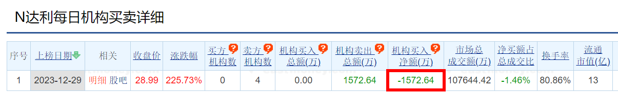 达利凯普龙虎榜:4机构进卖出前5 净卖出共1573万元