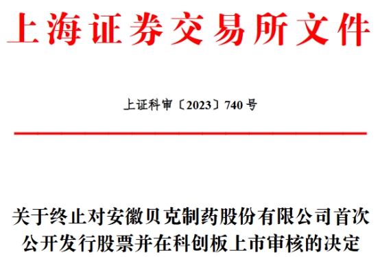 日前,贝克制药和保荐人国元证券股份有限公司分别向上交所提交了《关于撤回首次公开发行股票并在科创板上市申请文件的申请》和《国元证券股份有限公司关于撤回安徽贝克制药股份有限公司首次公开发行股票并在科创板上市申请文件的申请》,申请撤回申请文件。根据《上海证券交易所股票发行上市审核规则》第六十三条的有关规定,上交所决定终止对贝克制药首次公开发行股票并在科创板上市的审核。