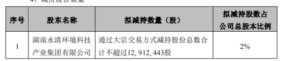 永清环保表示,上述股东股份通过大宗交易方式减持的,任意连续90个自然日内减持股份的总数不超过公司股份总数的2%。