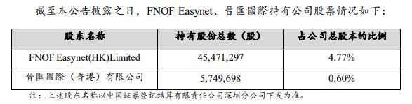 FNOF Easynet、晉匯國際本次减持股份来源为首次公开发行股票前持有及实施权益分派取得的股份。