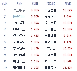 板块方面,景点及旅游、酒店及餐饮、机场航运、煤炭开采加工等板块领涨,消费电子、计算机设备、农业服务、黑色家电等板块走低。