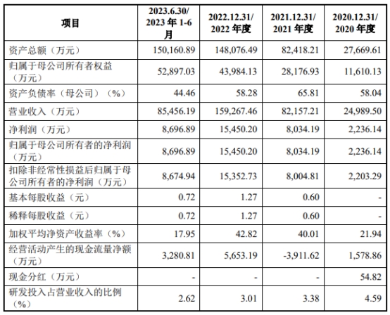 2020年至2023年1-6月,西典新能营业收入分别为24,989.50万元、82,157.21万元、159,267.46万元、85,456.19万元,净利润/归属于母公司所有者的净利润分别为2,236.14万元、8,034.19万元、15,450.20万元、8,696.89万元,扣除非经常性损益后归属于母公司所有者的净利润分别为2,203.29万元、8,004.81万元、15,352.73万元、8,674.94万元。