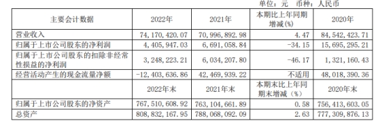 威帝股份2022年年度报告显示,公司2022年营业收入为74,170,420.07元,同比增长4.47%;归属于上市公司股东的净利润为4,405,947.03元,同比下降34.15%;归属于上市公司股东的扣除非经常性损益的净利润为3,248,223.21元,同比下降46.17%;经营活动产生的现金流量净额为-12,403,636.86元,上年同期为42,469,939.22元。
