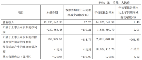 威帝股份2023年第三季度报告显示,公司2023年前三季度营业收入为44,975,341.98元,同比变动1.40%;归属于上市公司股东的净利润为1,836,890.70元,同比变动2.01%;归属于上市公司股东的扣除非经常性损益的净利润为-2,081,678.87元,同比变动-261.85%;经营活动产生的现金流量净额为18,024,715.76元。