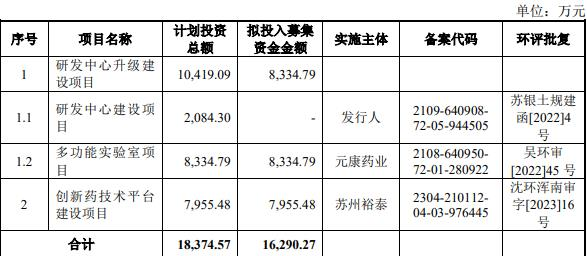 公司原拟募集资金16,290.27万元,计划用于研发中心升级建设项目(含研发中心建设项目、多功能实验室项目)、创新药技术平台建设项目。