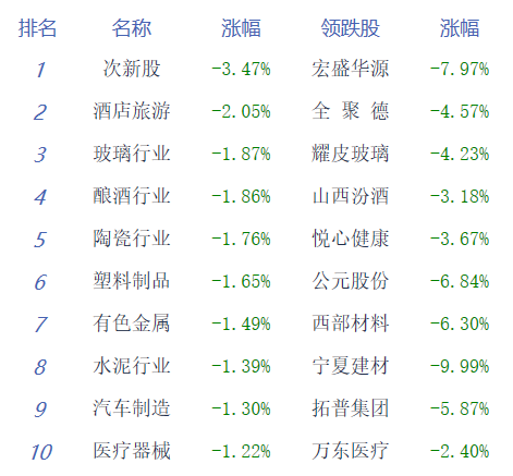 A股市场板块及个股涨跌幅排行
