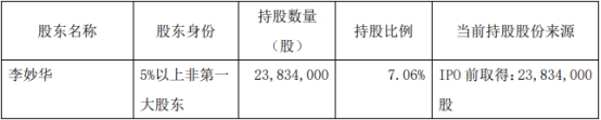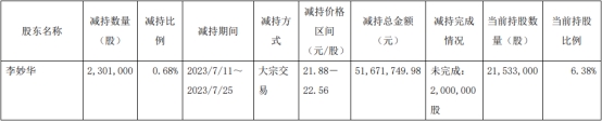 本次减持股份计划实施前,李妙华持有公司股份23,834,000股,占公司总股本的比例为7.06%。