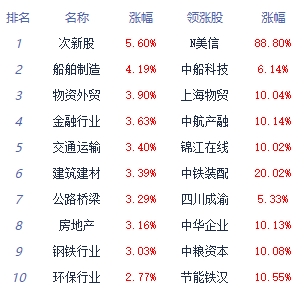 A股市场板块及个股涨跌幅排行